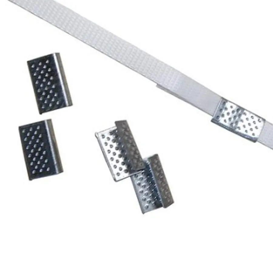 Скобы для ленты упаковочной шириной 19 мм изготавливаются из металла. В одной упаковке содержится 1000 штук. Этот вид крепежа обеспечивает надежное соединение ленты в процессе хранения и перевозки различных грузов. Для скрепления скобой используется ручной инструмент: клещи и натяжитель.